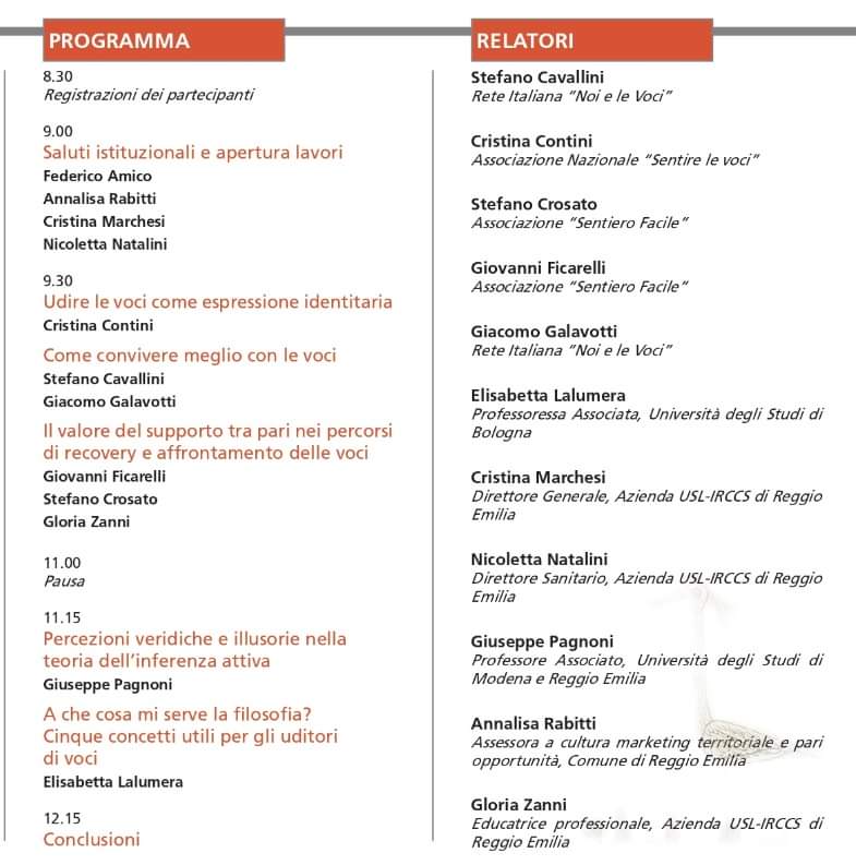Il convegno sull'esperienza degli uditori di voci rientra all'interno degli appuntamenti della XVII Settimana della Salute mentale di Reggio Emilia